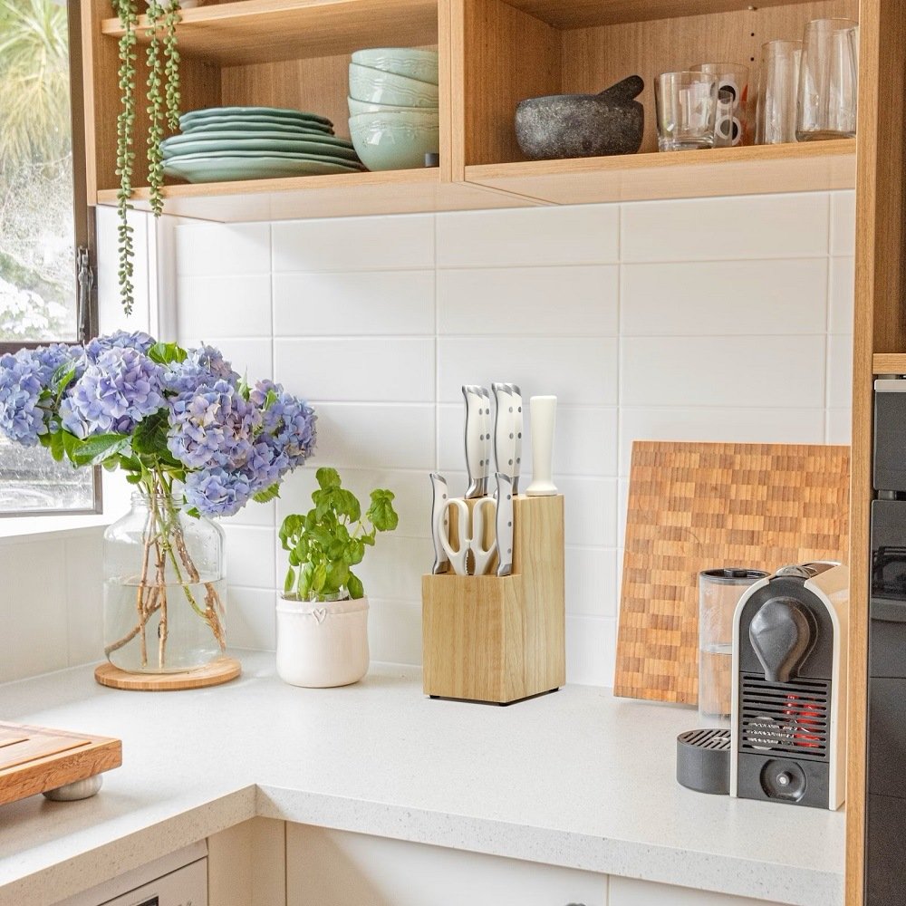 • Beauty White Knife Set Elevates Your Kitchen: The cooking knife set handles are all ergonomically designed and made with triple-riveted full-shank blades that provide excellent balance for comfortable cutting. Suitable for slicing, chopping and dicing, etc., easily prepare meat, fish, vegetables, fruit and bread etc. All knives are stored in the knife block, saving your kitchen table space, and the knife block set with a beautiful appearance complements your tidy kitchen!